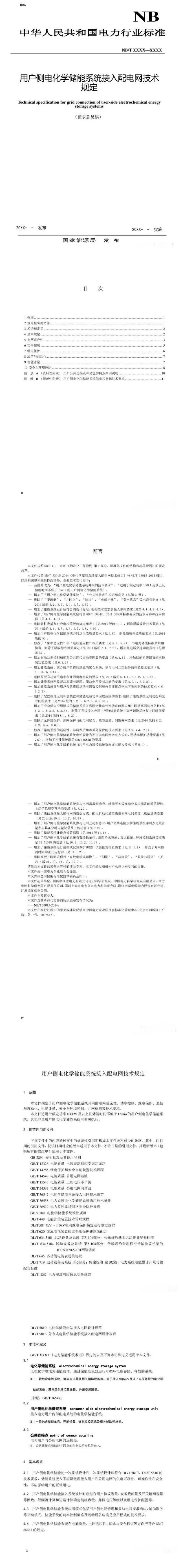 近日,中电联发布《用户侧电化学储能系统接入配电网技术规定》(征求意见稿)。