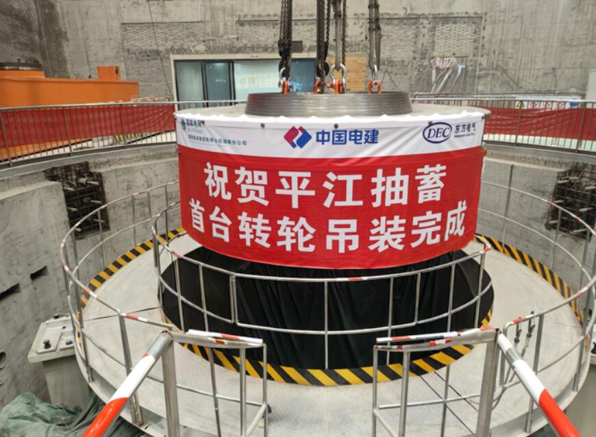 9月5日,湖南平江抽蓄电站首台(1号)机组转轮吊装完成。