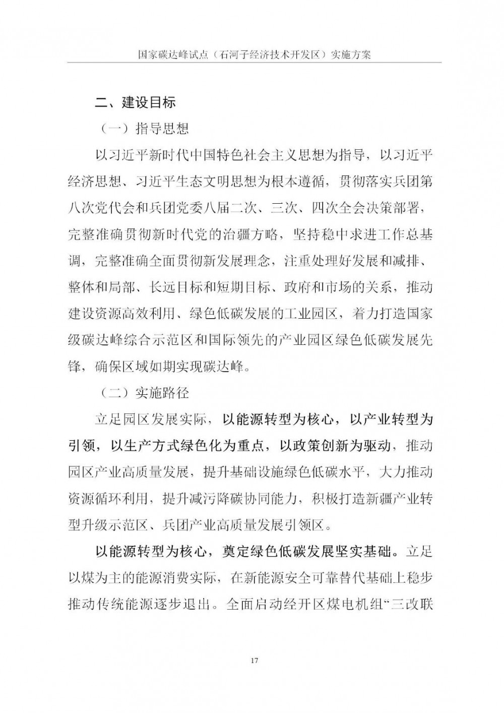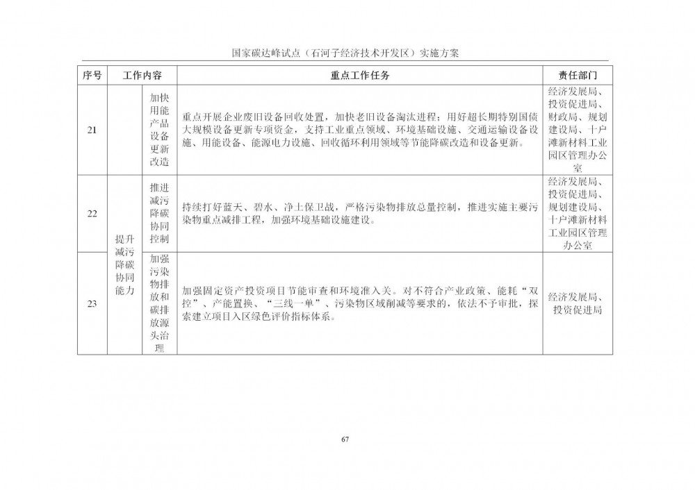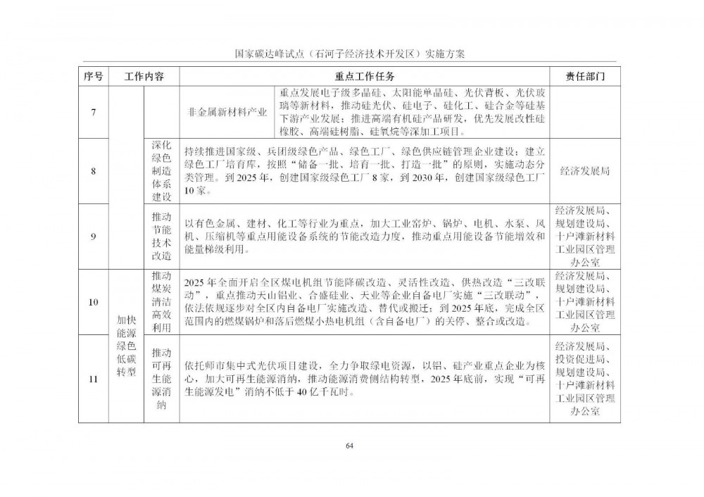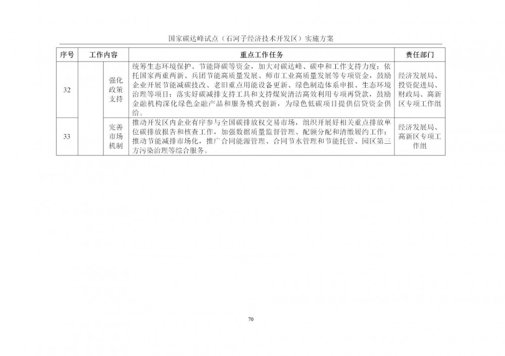 按照《中共中央 国务院关于完整准确全面贯彻新发展理念做好碳达峰碳中和工作的意见》《国家碳达峰试点建设工作方案》要求,以及《新疆生产建设兵团碳达峰实施方案》部署,师市发展改革委同石河子经济技术开发区管理委员会、工信局、生态环境局等多部门,结合开发区产业实际与绿色发展基础,共同起草了《国家碳达峰试点(石河子经济技术开发区)实施方案》。