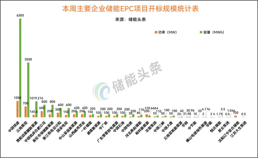 中国铁建开标规模为1050MW/6300MWh;