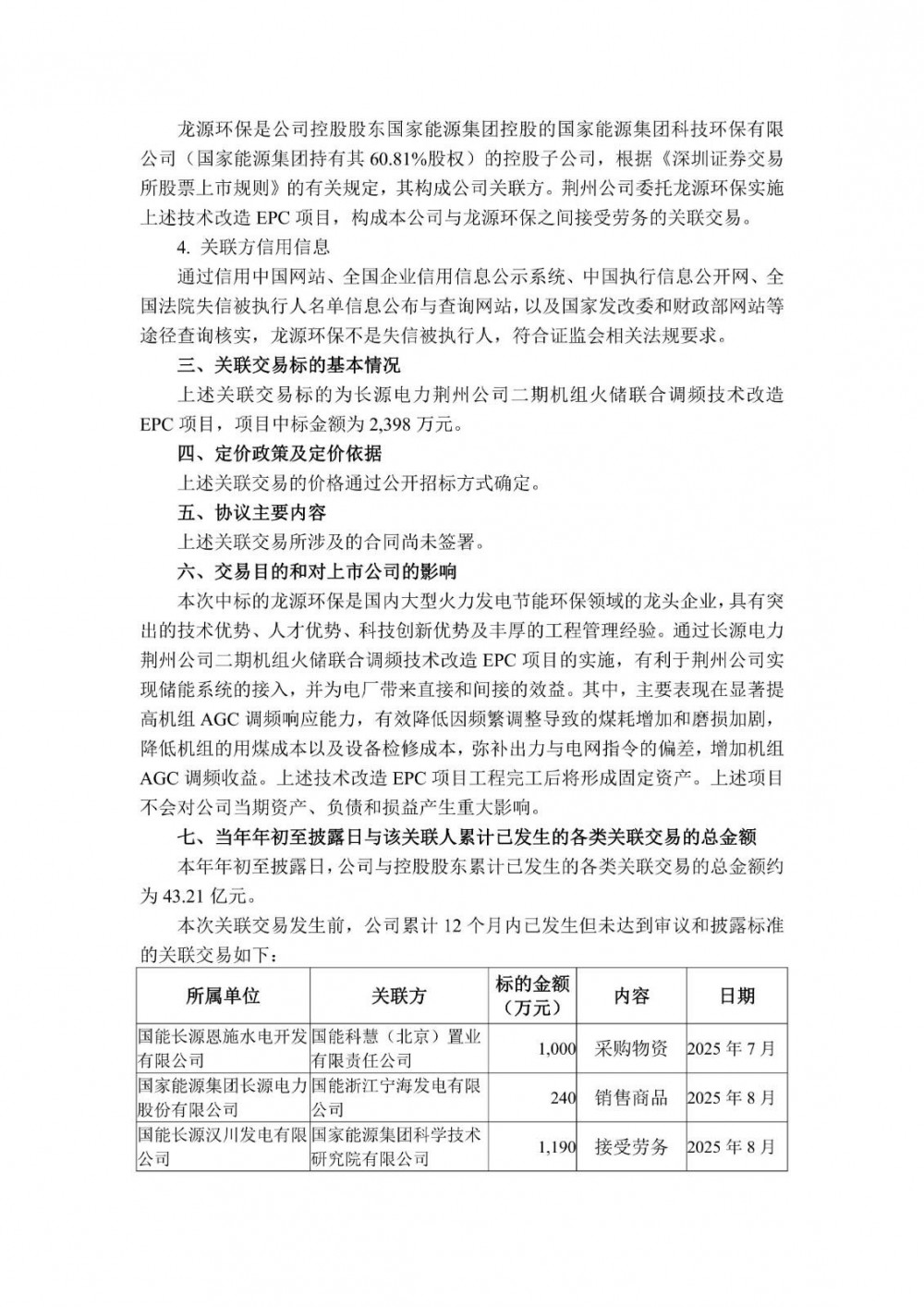 10月10日,长源电力发布公告称,公司收到招标代理机构国家能源集团国际工程咨询有限公司发出的《中标通知书》,确定国能龙源环保有限公司为公司全资子公司国能长源荆州热电有限公司长源电力荆州公司二期机组火储联合调频技术改造EPC项目的中标方,项目中标金额为2,398万元。